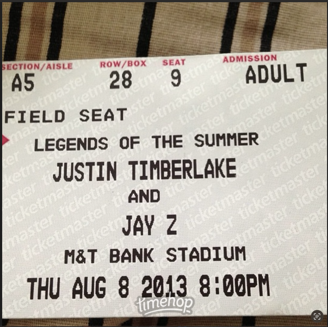 Since I was able to graduate and get a job, I was prepared for the Legends of Summer Tour. There were many whispers online beforehand. Luckily for me, my tax return hit at the same time the tickets went on sale. I’ll never forget the story…. I got in the car on the way to the store nearby… and my friend called me as I left the complex. She was telling me that the tickets were on sale and she was not near a computer…. I doubled back so quick… We managed to get two tickets to a show in Baltimore… to see him and Jay Z a few months later. We definitely had to plan because we were no where near Baltimore… And neither one of our families wanted us to go to Baltimore… They felt it was too far away. But I was NOT going to be talked out of my first time seeing Justin for any reason by anyone. It was a sad time for the guy I was dating at the time… He kept telling me traveling to see a concert was a bit much. (This would be the same person who got to go to the FutureSex Loveshow…) But whatever. There were only 14 shows to choose from and there was no way I was going to miss it. LOL.