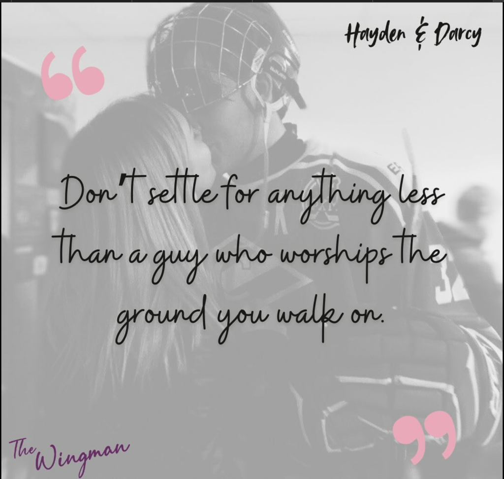 Since Darcy wants to gain confidence in dating and meeting men, she decides that she needs a coach. Being in an 8 year relationship will do that to you. Trying to rediscover herself… Her likes and needs. Especially since we learn that Kit really stifled her… not purposely but he did nonetheless. The issue is that her idea is to ask Hayden to be her Wingman. Hayden decides to agree because even if it kills him, he just wants to be close to her.