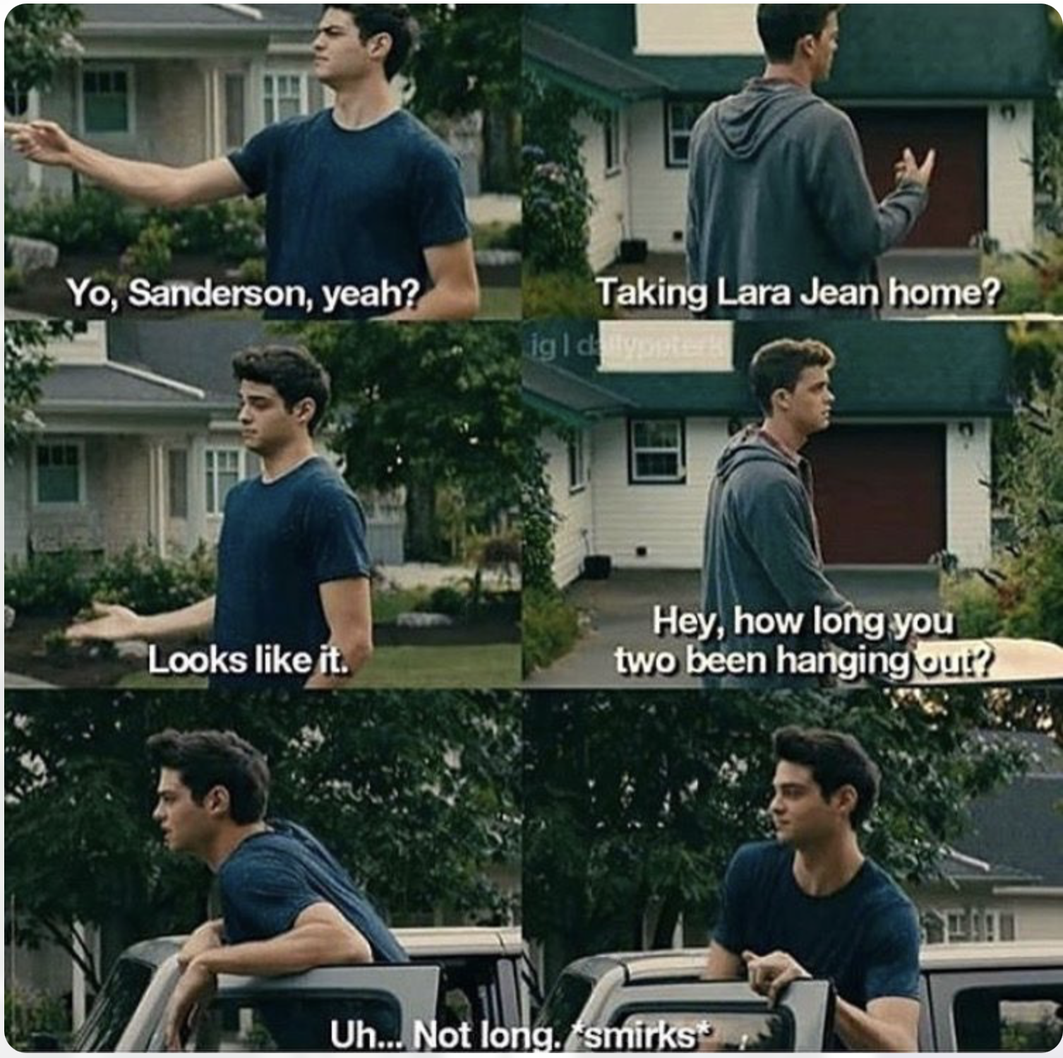 I have to say the fact that Peter remains tight lipped when questioned by Josh has to be my favorite thing. Like obviously he is taking LJ home. Who are you the police? Josh is already feeling jealous (and in my mind not minding his business.) and while a friend of mine who watched the book pointed out that Josh feels blindsided by the fact that he liked Lara Jean and she liked him but he never knew it… (I agree with that to a certain extent.) But I mean that ship has sailed. It is okay to mourn that… but to try and stop her life is crazy. And don’t get me wrong, I have been in mourning myself, and I haven’t forgotten these are teenagers, but some lessons are hard to learn. He was fine as long as he was dating her sister and she was around third wheeling. It was all about him. (Insert Eyeroll.)