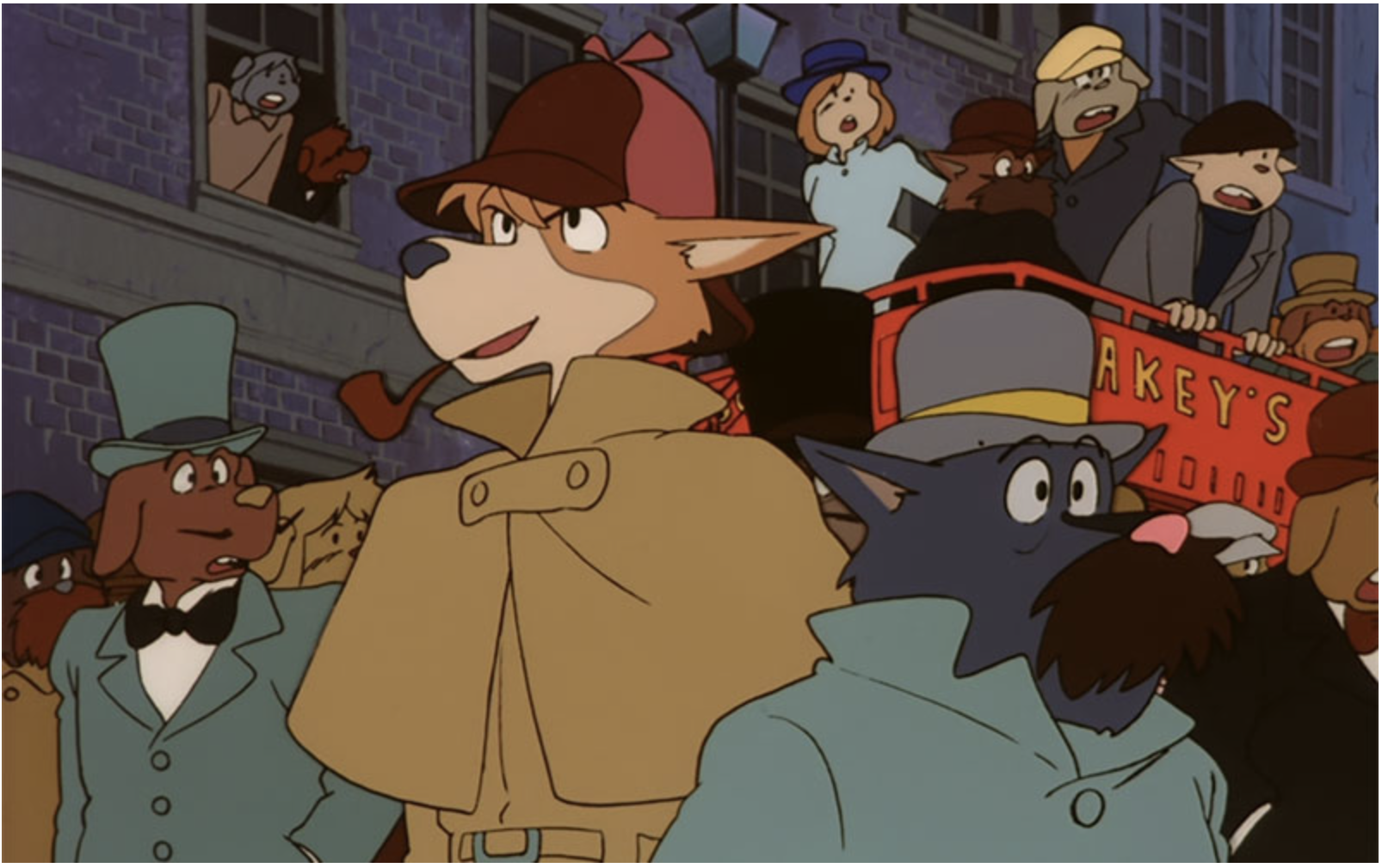 - Sherlock Hound: The canine version of Sherlock Holmes. Sherlock Hound is a brilliant detective known for his keen intellect, sharp observation skills, and quick thinking. He is always ready to solve mysteries and outsmart villains with his trusty magnifying glass, smoking pipe and deerstalker hat. It is a kid’s show, so there is no hard drugs like the books. But he is regularly conducting chemical experiments that lead to clouds of noxious fumes. He also seems to have feelings for Mrs. Hudson. But everyone is taken with her.
