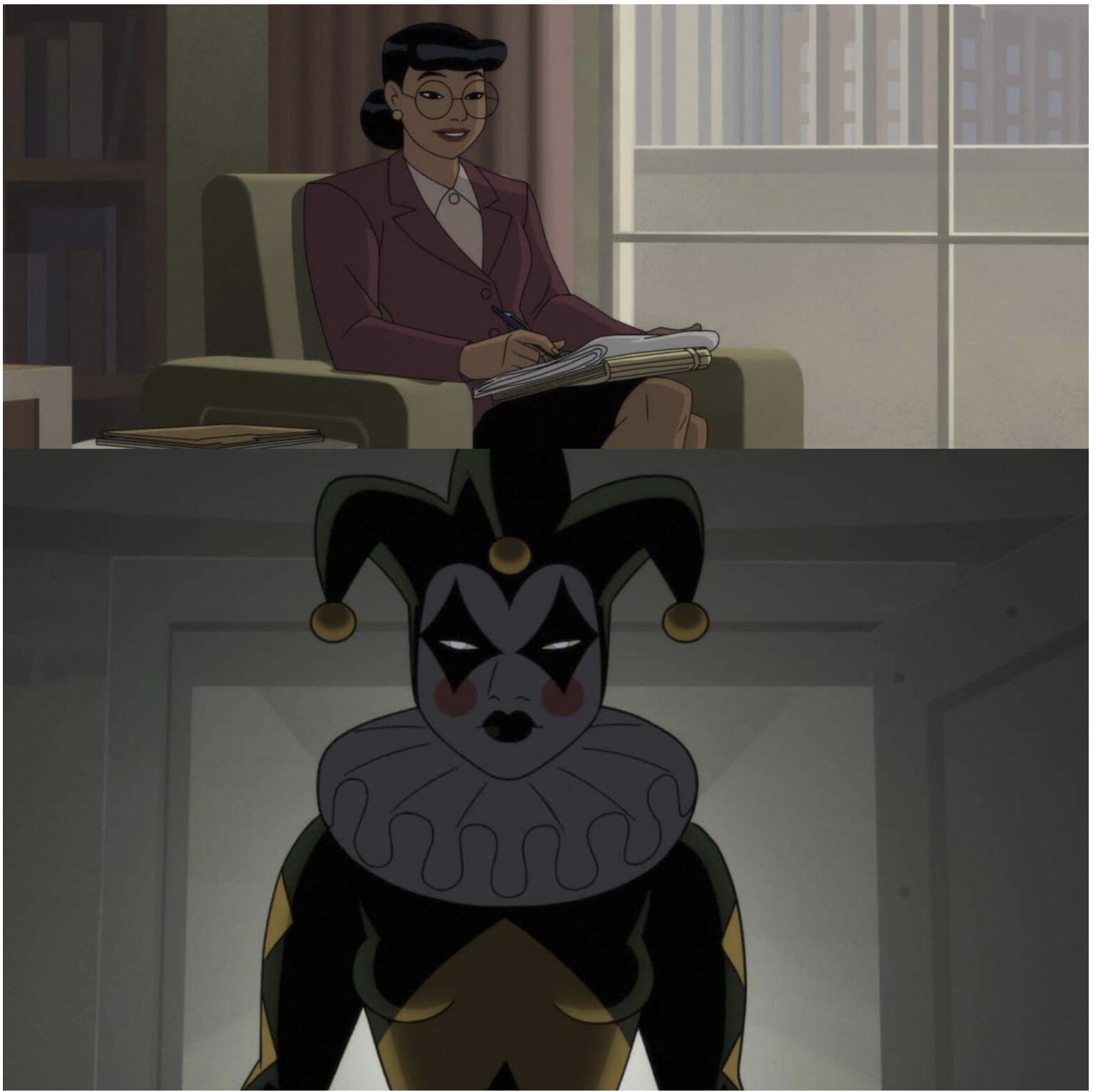 Imagine spilling your guts to your shrink.. about how poor people are a scourge on the earth and then you end up in her underground cave. Probably best that Wayne never opened up to her. He was too bright for it. But it doesn’t seem that at that time he was aware of her extracurricular activities. But also so was she. Harley knew that Wayne was hiding something and makes it clear that she doesn’t believe his facade. After several wealthy businessmen abruptly donate their fortunes to charity and go missing, Barbara decides to start asking questions. (I mean with her caseload… you wonder if anyone was going to be looking for a bunch of rich men who left…?) In reality, Quinzel has adopted the jester-like persona of Harley Quinn and is subjecting the businessmen to immense torture in an attempt to correct their minds. It was an interesting take on a character to make it feel fresh.