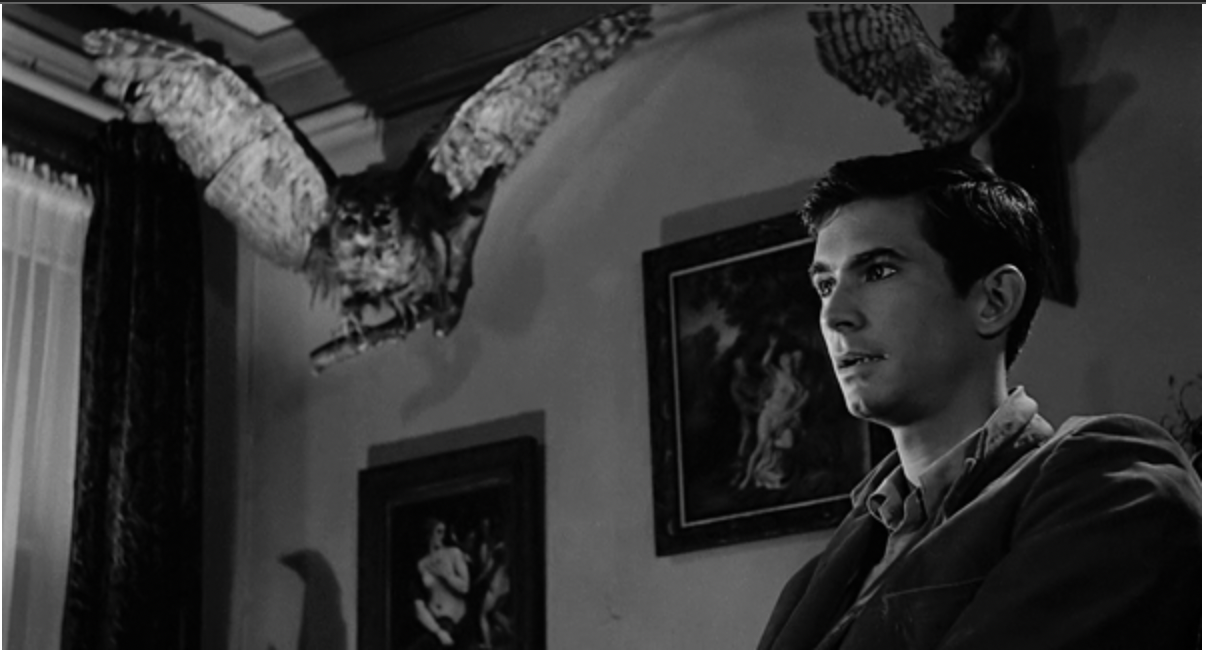 One of the other things that Dr. King talked about was what we thought was Norman’s upbringing based on what we saw. I remember him writing on the board that Norman is both devoted to her and imprisoned by her which leads to him killing her. Norman becomes instantly defensive when Marion suggests institutional help for his mother, reacting with disgust and fear. I said earlier that this was the first red flag… because the music instantly changes… He instantly becomes less pleasant… Even when Marion apologizes… he makes cutting remarks at her. Norman’s demeanor suddenly goes from being perfectly calm to filled with suppressed, unsettling, quiet rage in the blink of an eye. “She’s as harmless as one of those stuffed birds.” The was great foreshadowing for what came next.