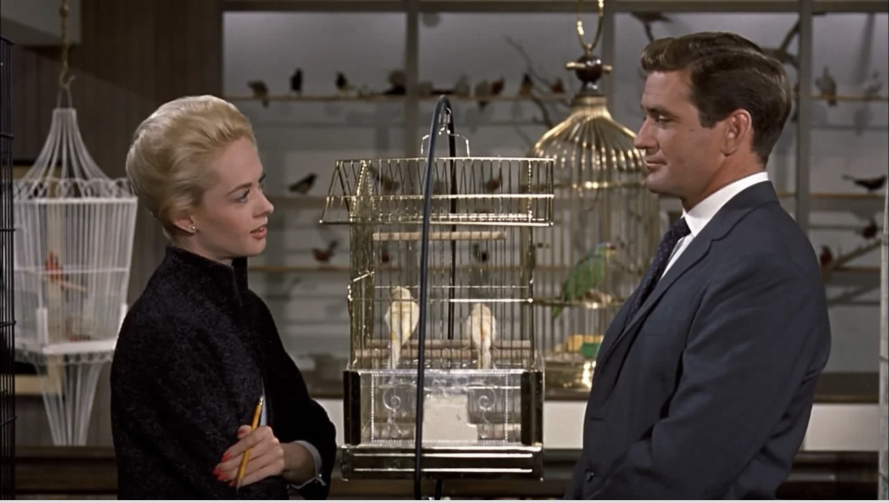 At a San Francisco pet store, socialite Melanie Daniels meets lawyer Mitch Brenner, who wants to buy lovebirds for his sister Cathy’s 11th birthday. Mitch recognizes Melanie from her court appearance regarding a practical joke gone awry and pretends to mistake her for a shop employee.