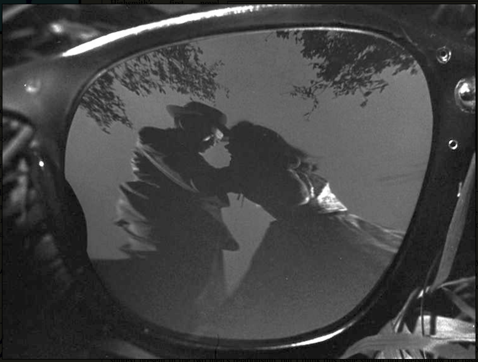 I remember bringing up the idea in class that there is something deeply creepy about sitting on a train in your mundane life… and then suddenly you are thrust knee deep in a murder plot. The idea that at any point you can accused of a crime, in this case, murder that you didn’t commit. Guy’s engraved lighter, left behind on the train, becomes a symbol of this unwanted connection. There is also this idea that even in the 1950’s there was no semblance of privacy. In their first meeting, Guy doesn’t know Bruno but Bruno knows everything about him and the people around him. This is more than just reading the newspaper or gossip columns. You get the impression that this is not the first time Bruno has been in the same place as Guy. But it is the first time that Guy knows it. So unsettling.