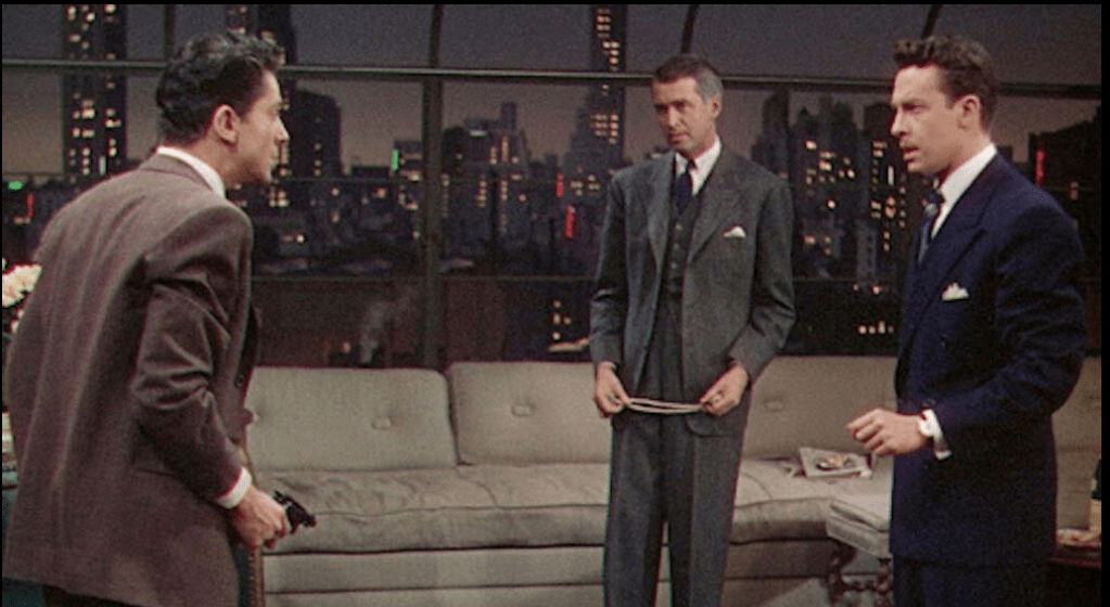 James Stewart is back on my list. The 4 films that Stewart was in were Rope (1948), Rear Window (1954), The Man Who Knew Too Much (1956), and Vertigo (1958). Rope is a 1948 American psychological crime thriller film directed by Alfred Hitchcock, based on the 1929 play of the same title. I don’t think I ever knew that many of his movies were based on books. The film was Hitchcock’s first color film. (Which shows that in 1960, it was a choice to shoot Psycho in black and white. A good one. I like it.)